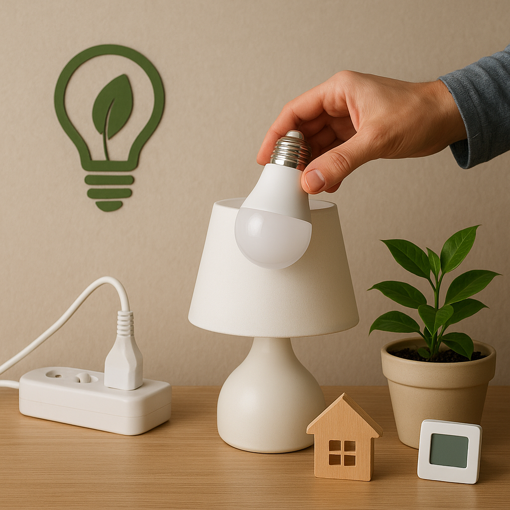 - Zamiana żarówek tradycyjnych na LED o wysokiej efektywności świetlnej (do 80 lm/W).
